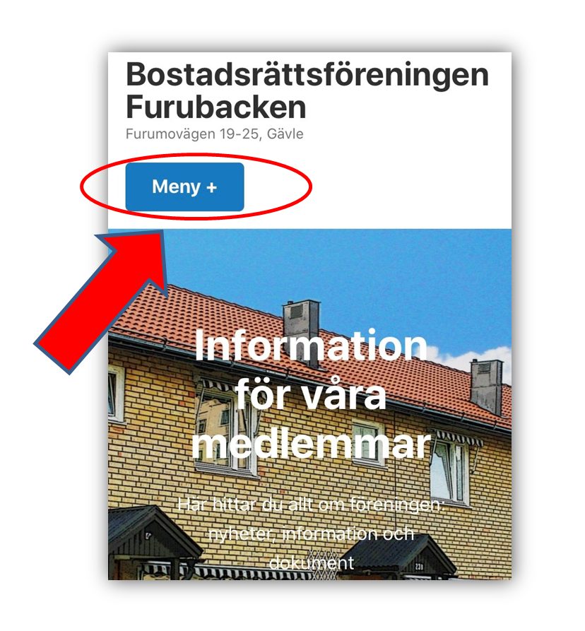 På mobiler ser den ofta ut som ovan. Klicka på ”Meny+” rutan så visas länkarna!